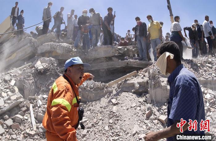 2003年,孫柏濤作為中國(guó)國(guó)際救援隊(duì)專家在阿爾及利亞地震現(xiàn)場(chǎng)指導(dǎo)救援。應(yīng)急管理部供圖
