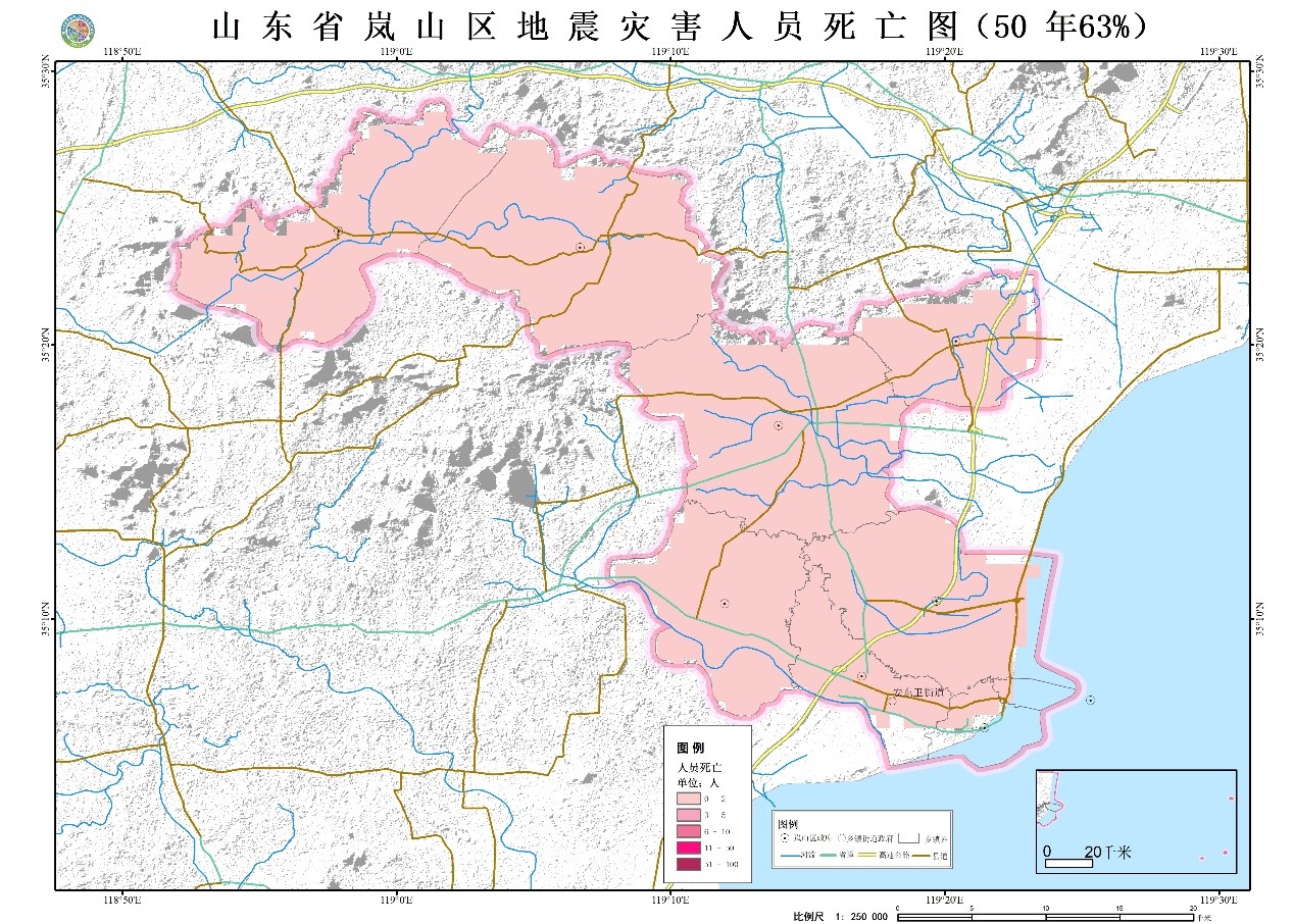 圖2 山東省日照市嵐山區(qū)地震災(zāi)害人員死亡風(fēng)險(xiǎn)圖