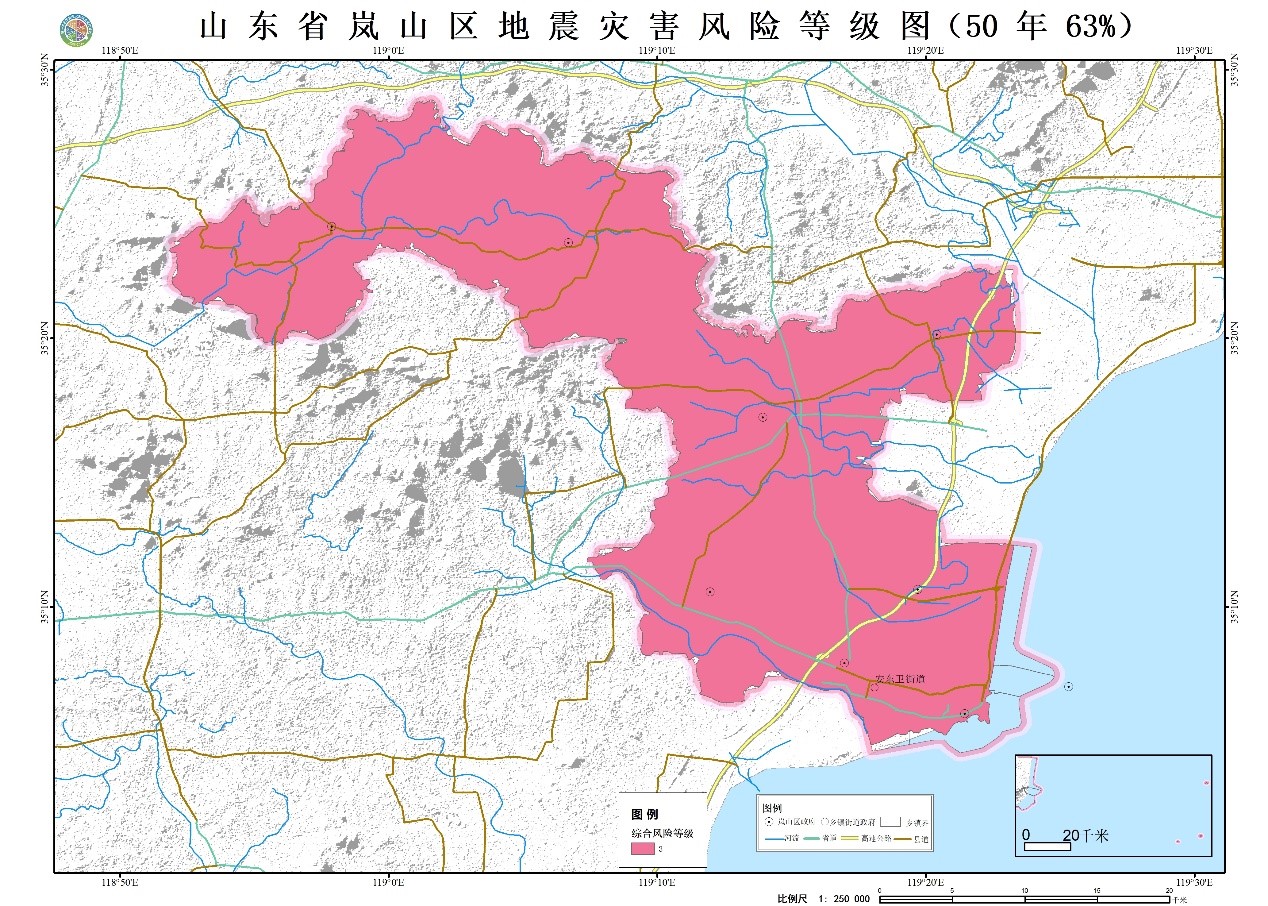 圖3 山東省日照市嵐山區(qū)地震災(zāi)害風(fēng)險(xiǎn)等級(jí)圖(50年超越概率63%)