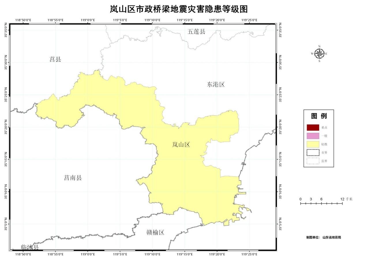 圖5 山東省日照市嵐山區(qū)市政橋梁地震災(zāi)害等級(jí)圖