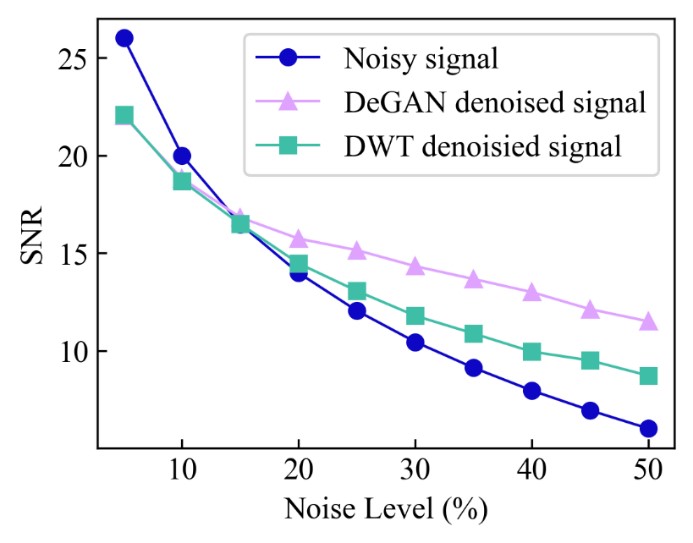 圖2 DeGAN對不同強度噪聲的去噪效果對比