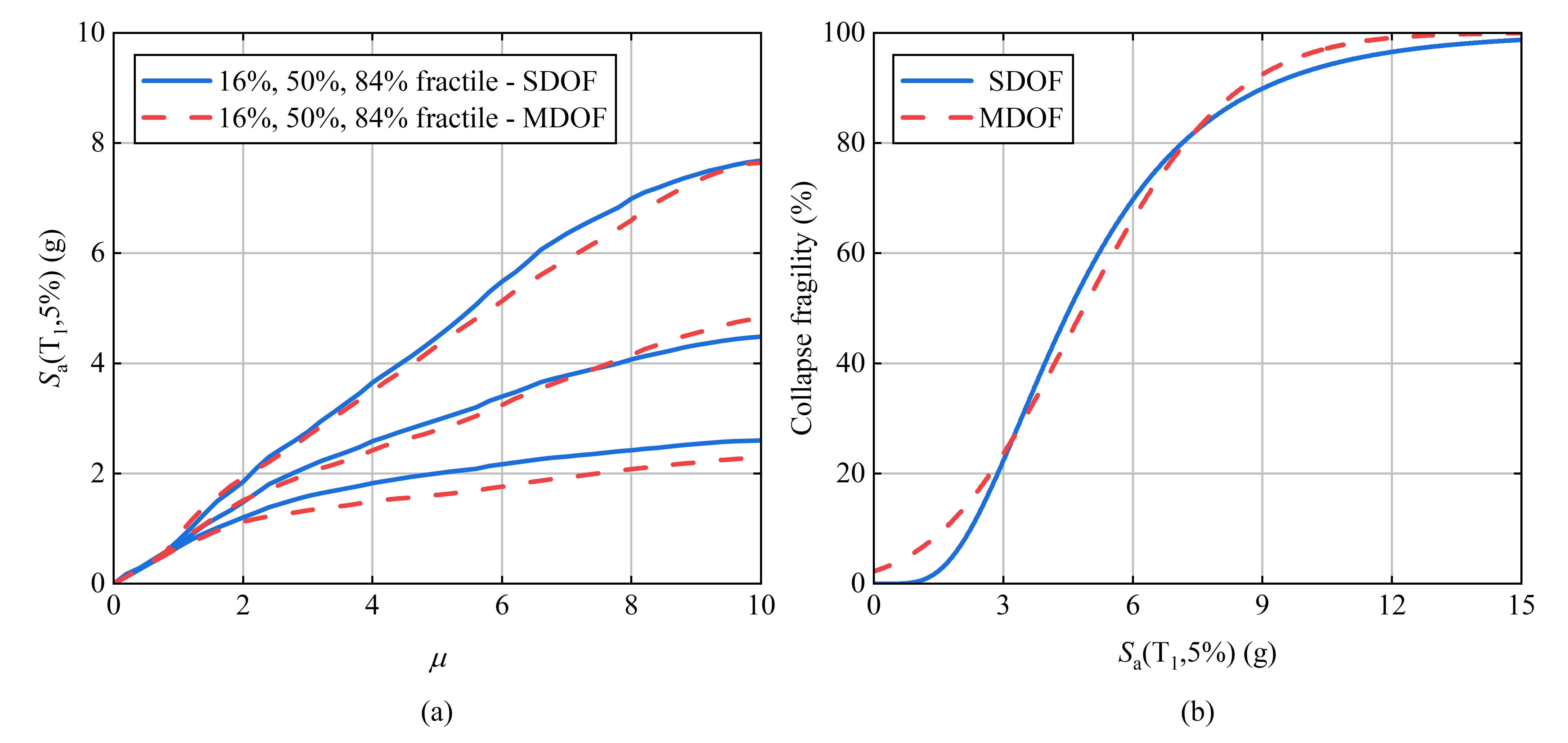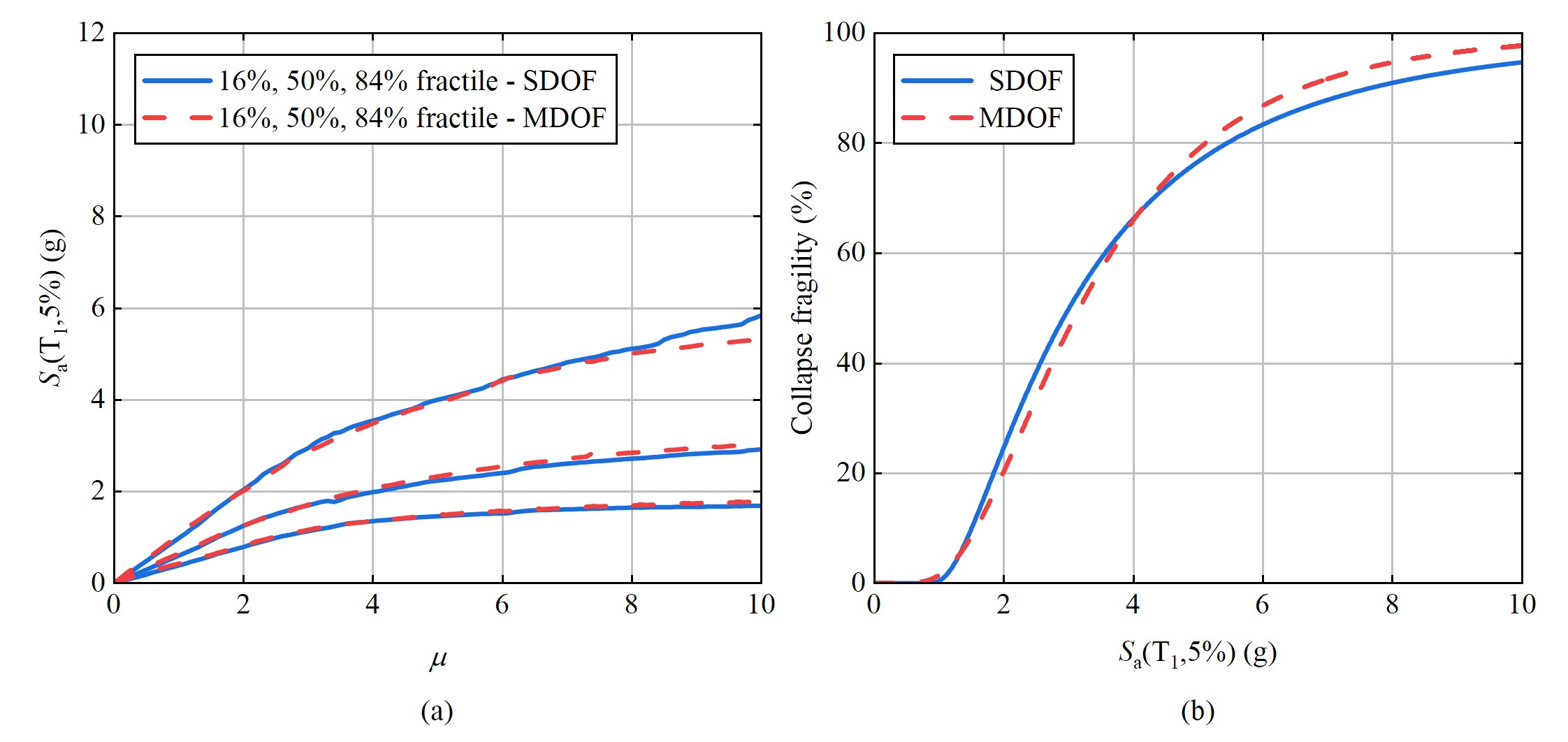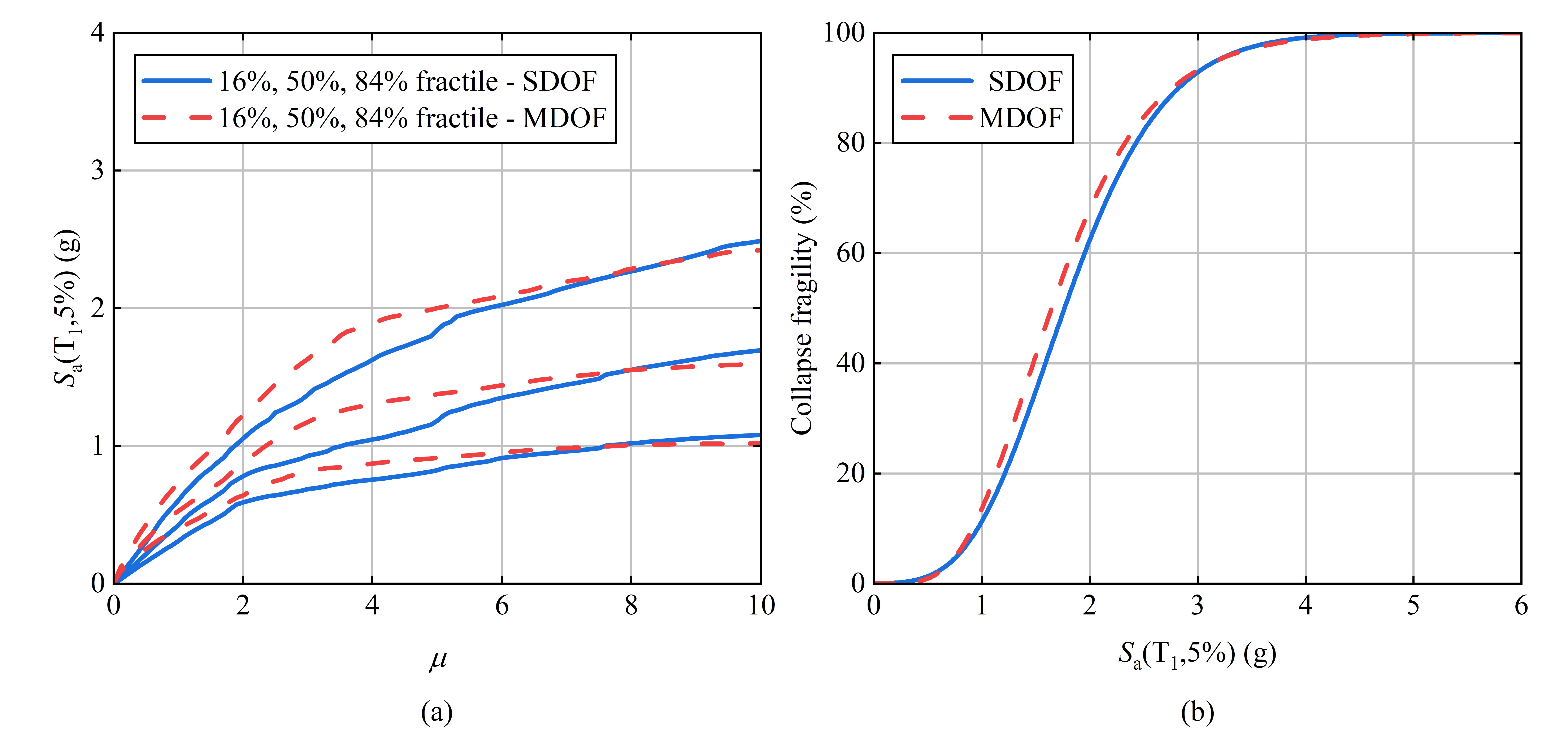 圖3 RC純框架結(jié)構(gòu)(a)IDA曲線對比和(b)倒塌易損性曲線對比